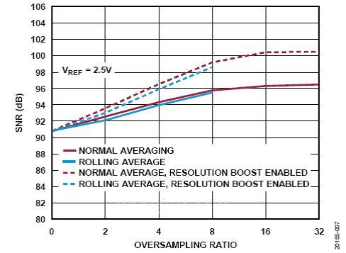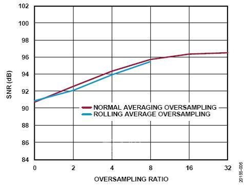 正常平均过采样技术适合于要求更高性能且能接受较低时钟速度和输出数据速率的应用。滚动平均过采样技术适合于需要速度和性能的应用。