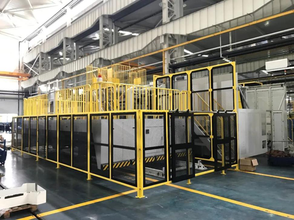 大型注塑机械的工作原理和中小型注塑机类似,只是由于大型注塑机生产的制成品体积比较大,因此在部分功能上进行了升级/增加,比如在换模流程,为提高换模效率由全自动小车来负责换模;在取料区域,注塑机和机械手结合变成带有自动下料功能的注塑机集成单元(戳链接了解集成制造系统安全),完成大型成品的取料。全自动小车和机械手等的引入,相关区域增加了机械式伤害的可能性。