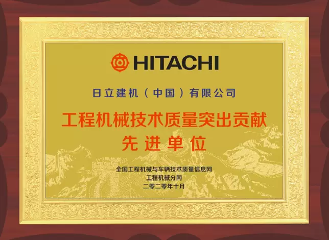 2020年10月中旬,第十二届全国工程机械与车辆技术品质信息交流会暨中国工程机械工业协会质量工作委员会会员大会在山东召开。凭借在研发创新和产品质量方面的出众表现,日立建机荣获“工程机械技术质量突出贡献先进单位”称号。