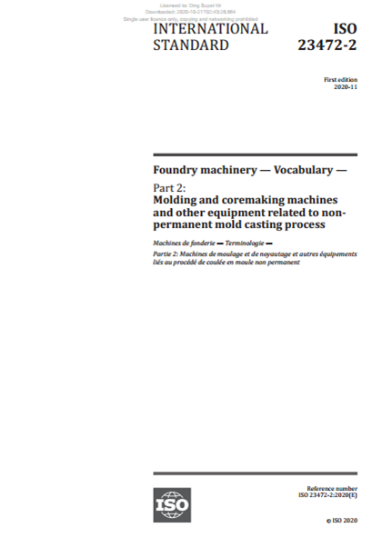 近日,国际标准化组织正式发布一项由中汽工程主导起草制定的铸造行业国际标准:“铸造机械—术语—第二部分:造型制芯设备和其他非永久型铸造相关设备(Foundry machinery — Vocabulary — Part 2: Molding and coremaking machines and other equipment related to non-permanent mold casting process)”。