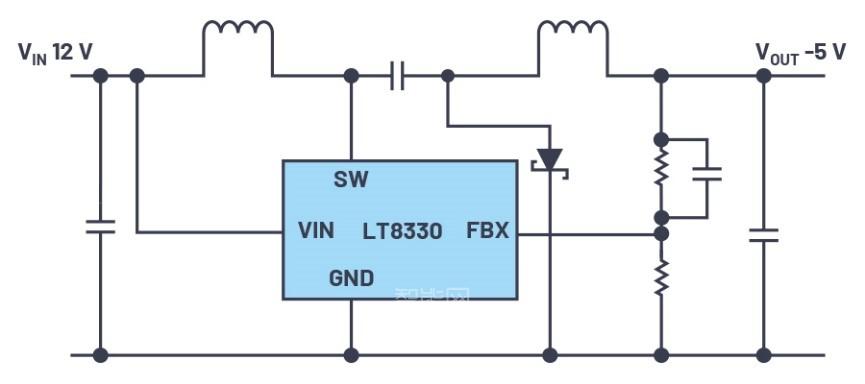 图3.采用LT8330的Ćuk稳压器电路示例。