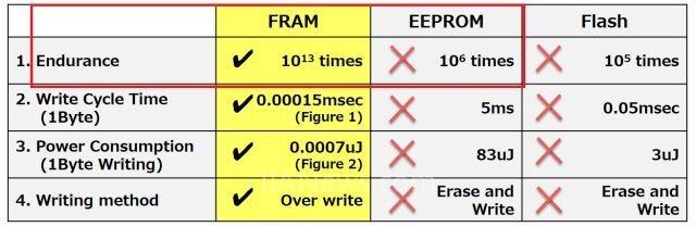 FRAM相较EEPROM具有更优秀的耐久性