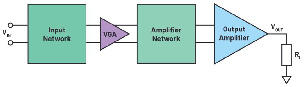 首先,初始输入信号必须通过VGA放大或衰减。VGA的输出信号可以设置为所需的幅度,而与输入信号无关。例如,对于增益为10、输出幅度VOUT为2V的情况,VGA的输出幅度必须调整至0.2V。遗憾的是,许多VGA都会因为增益范围有限而产生瓶颈——增益范围大于45dB的情况很少。