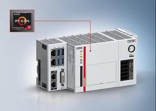 - CX2043:高性能嵌入式控制器,安装有滚珠轴承和速控风扇,搭载 AMD Ryzen™ V1807B CPU(时钟频率:3.35 GHz,四核)