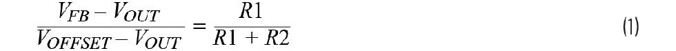 公式1显示了IC的反馈电压(VFB)、所需的输出电压(VOUT)、外加正极直流偏置电压(VOFFSET),以及电阻分压器的电阻R1和R2之间关系。