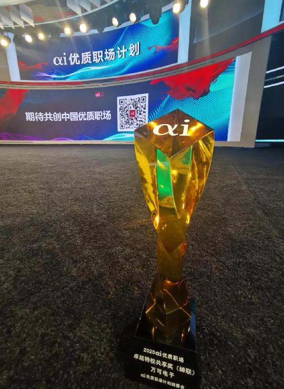 万可电子(天津)有限公司在增进员工健康力,充分构建员工人文关怀方面做出不懈努力,荣获“2020 αi优质职场卓越特权共享奖(蝉联)”。