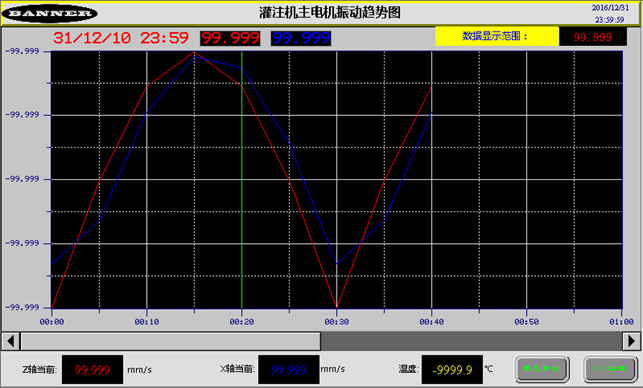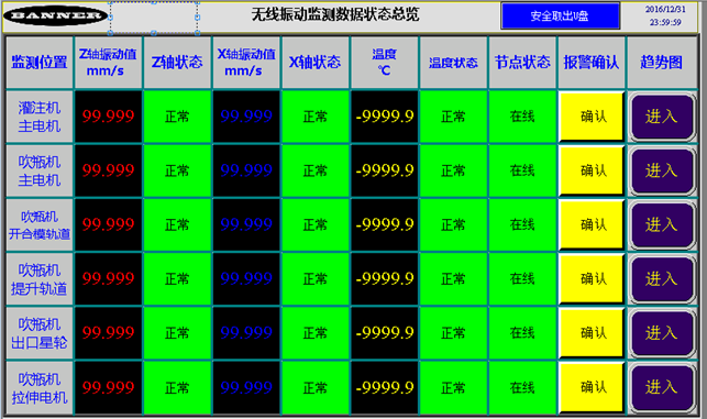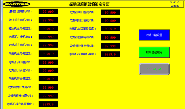 系统可设定振动及温度报警值,当监测值超过设定值,触摸屏上会进行报警提示,再有专业人员进行查看,监测的部位是否正常。