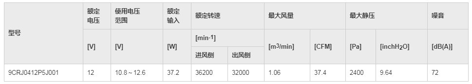※2 我司以往产品:双重反转风扇 40 ×40 × 56 mm 的“San Ace 40”9CRH 机型(型号:9CRH0412P5J001)。