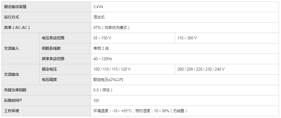 “SANUPS E11B”的输出容量为 1~3kVA。