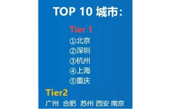 《报告》还发布了2020年中国AI城市排行榜。排名前五的城市依次为北京、深圳、杭州、上海、重庆,排名6~10的城市为广州、合肥、苏州、西安、南京。