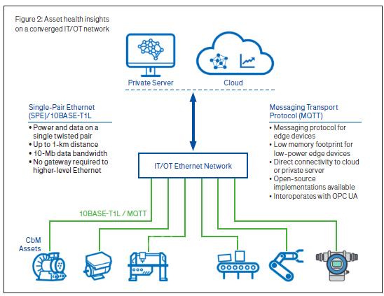 由IEEE制定的新单对以太网(SPE)物理层标准为传输资产运行状况信息,实施状态监控应用提供了新的连接解决方案。10BASE-T1L是在2019年11月7日经过IEEE认证的新以太网物理层标准(IEEE 802.3cg-2019)。这将通过与现场级器件的无缝以太网连接显著提高工厂运营效率,变革自动化行业。10BASE-T1L解决了至今为止一直限制现场使用以太网的挑战。这些挑战包括功率、带宽、布线、距离、数据岛以及本质安全0区(危险区域)应用。通过解决后装升级以及前装安装的挑战,10BASE-T1L将有助于获得以前无法获取的新资产运行状况信息,并将它们无缝传送给控制层、云/私人服务器。这些新的见解将通过从现场资产到云或私人服务器的融合以太网网络(请参见图2),让数据分析、运营见解和生产力提高成为可能。