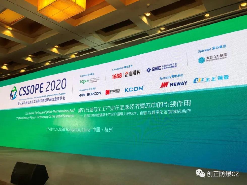 2020年12月17-18日,第十届中国石油化工装备采购国际峰会暨展览会(CSSOPE 2020)在杭州盛大举行,创正电气等上百家企业应邀参加本届展会。