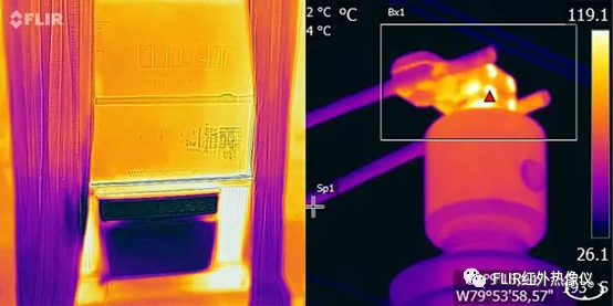 左图为测量窑炉温度,温度超过测温范围时,热像仪正在猜测温度