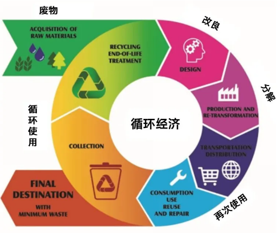 循环经济是指通过有效利用能源和资源,保护有价值的原材料并将其重新用于新用途,借此来减少浪费并降低排放。“一个过程中所产生的废物是另一个过程的新原料”。《欧洲绿色协议》中说明了这对于环境保护和气候保护的重要性,其中,循环经济扮演了重要角色。