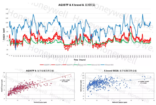 为了提升SO2电化学传感器在网格化微站监测应用中的检测效果,霍尼韦尔研发团队呕心沥血开发出AQ3系列(SO2,NO2,O3,CO)大气空气质量传感器,尤其是明星产品SO2传感器具有高分辨率、低检测下限、相关性高和一致性好的特点,还能提供1:1温度及交叉干扰补偿系数,显著提升了低浓度SO2的监测效果。