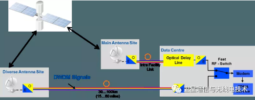 Ka波段站点分集配置依靠DWDM射频-光纤传输系统和冗余切换单元,是最合适的解决方案,并确保最大的系统可靠性和系统可用性。