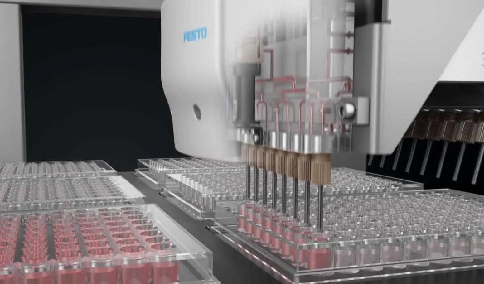 在自动化的创新探索中,Festo针对核酸检测解决方案,尤其是在样本前处理环节,如:采样瓶开关盖及移液处理等工序,都有独到见解。通过巧妙的组合移液和定量滴定,优化液体搬运过程的自动化,实现高精度高通量的移液。解决医疗卫生行业的现有困难,助力全球抗疫工作顺利进行。