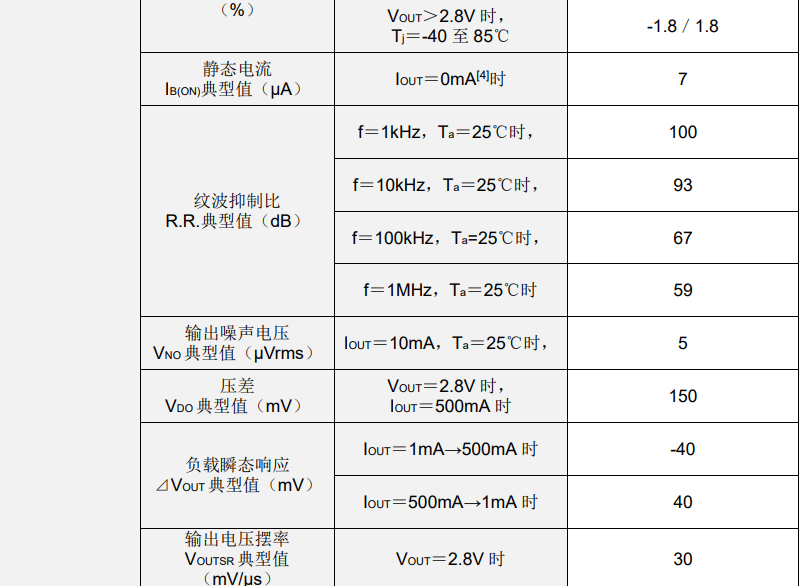 VOUT>2.8V,Tj=-40℃至85℃时,VOUT最小值/最大值=-1.8%/1.8%