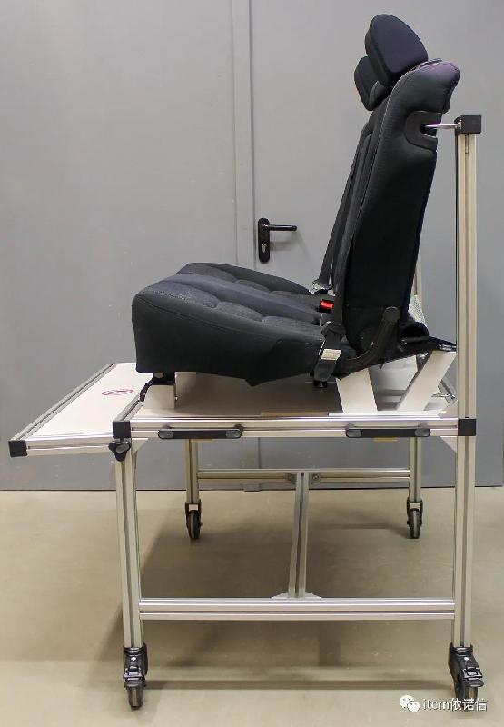 儿童汽车座椅演示器避免了之前演示中存在的问题,首先它是看得见摸得着的,并给观众提供了清晰的视野。为了更好的演示真实场景,全尺寸的汽车后座需要固定在一块木板上,木板则固定在采用 item MB 工业铝型材装配系统搭建的框架上,框架底部还安装了脚轮。使用全尺寸后座意味着,进行演示的人可以同时展示安装儿童汽车座椅的正确方法和常见的错误方法。