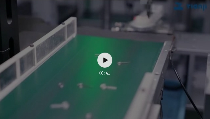 电子五金件无序来料,一台相机进行拍照定位,一台天机SCARA在高速流动的传送带上动态抓取,整齐摆盘。