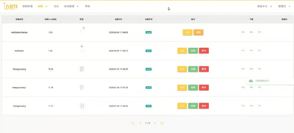 地图管理:支持单地图多机使用,图形化地图管理使得查看地图信息更加全面,并附加查看地图点云效果及地图原点修改等功能;