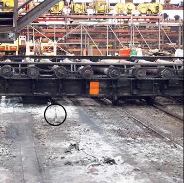 一家全球性的钢铁生产厂正在经历生产停机的危机;因为用于运输巨大的炽热钢板的大型运输车(长度为200英尺)时常会超出平时穿梭的位置或与运输轨道线末端的障碍物碰撞,而这些大型运输车会触发安装在地面上的微动开关,从而使整个钢铁生产厂发生停机。(微动开关安装在轨道55至60英尺处,有六个点)