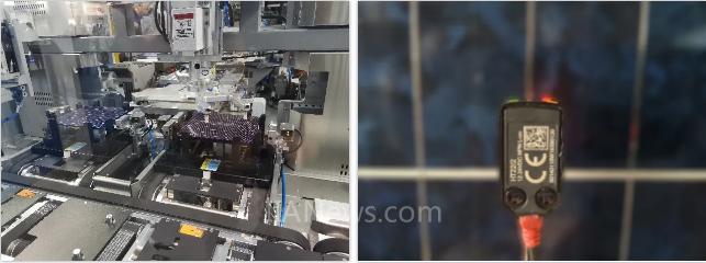 在电池片生产和输送环节中,因为空间有限,对传感器的尺寸及其光学性能有着比较严苛的要求。微型传感器可以大展拳脚。如下图硅片制绒清洗工艺中,我们的ET 12系列微型传感器广泛用于装载硅片的花篮进行精确定位和正反等检测。