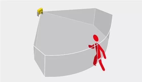 该方法也称为多普勒雷达原理,它可以非常精准地确定移动情况。LBK传感器不仅可以检测出正在移动的人员,还可以检测出几乎看不出任何移动迹象的静止人员。即使人员站立不动,也不是绝对静止的,始终会存在一些动作,例如脉搏或心跳等。LBK传感器借此可靠辨别危险区域中的人员与托盘或物料箱等静止物体。轻微的人员动作也足以生成可靠的机器关闭信号。因此,如果危险区域中有人存在,LBK系统将会中断机器运行过程。例如,完全静止不动的物料箱可以留在保护区域内,而不会导致运转过程中断。这样,LBK系统能够防止不必要的停机,并提高系统的可用性和成本效益。另一方面,它还可以确保所有人员离开危险区域后再次启动机器,从而实现可靠人员保护。