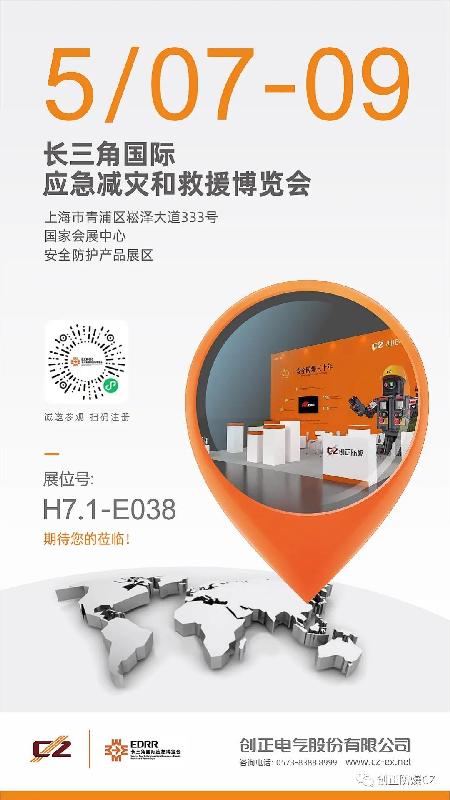 首届长三角国际应急减灾和救援博览会将于2021.5.7-2021.5.9在国家会展中心(上海)盛大召开,创正电气诚邀您参观指导.