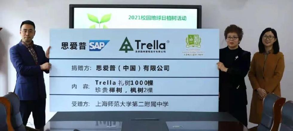 今年的世界地球日,SAP 向上海师范大学第二附属中学捐赠了1000余棵中国本土珍贵树木,以践行公司「2025年前在全球种植500万棵树木」的承诺。SAP 携手在中国管理着百万树超级中心和多个植树造林项目的 Trella 森林科技(以下简称「Trella」),在上海师范大学第二附属中学举行了本次捐赠和植树仪式。SAP 全球副总裁、SAP 中国联席总经理董志刚,上海师范大学第二附属中学校长蔡文,以及 Trella 中国区总经理李若薇共同出席了千树捐赠仪式,并围绕世界地球日这一主题,对一千多名在校学生进行了环境教育。