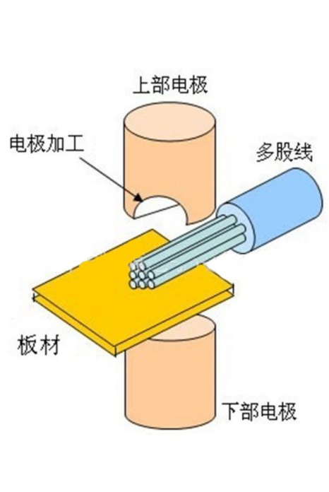 当点焊机的焊接电流从一个电极流向另一个电极时,在两个工件的接触点处形成电阻热并产生熔核,进而形成焊点。由于点焊机的焊接电流是在瞬间从另一个电极沿两个工件流向电极形成回路,所以对于待焊工件的内部结构并不形成破坏,保证了原有材料特征的完整性。