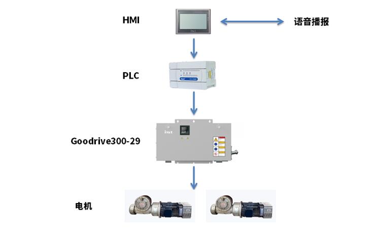 使用英威腾GD300-29系列能量回馈变频器,控制简单,功率密度高,占用空间小。并且英威腾GD300-29能够在回馈整流和逆变集成后,将下放时电能回馈到电网,省去了制动电阻,从而实现低发热和低功耗,达到节能高效的目的。