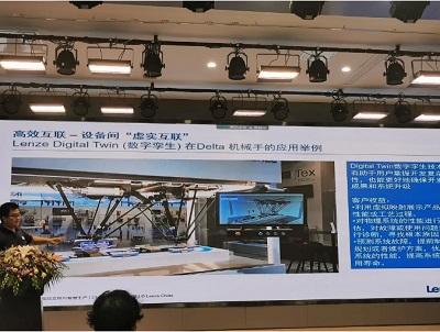 数字孪生在机器人制造商中的可能应用也延伸到了其他的产品生命周期中:在享有一定支持和服务的情况下,数字孪生将为高效故障排除提供重要的信息。作为智能工厂的虚实互联技术,从构想、设计、测试、仿真、生产线、厂房规划等环节,可以虚拟和判断出生产或规划中所有的工艺流程,以及可能出现的矛盾、缺陷、不匹配,所有情况都可以用这种方式进行事先的仿真,缩短大量方案设计及安装调试时间,加快交付周期。梁霄经理在会议中分享到Lenze Digital Twin(数字孪生)在Delta机械手的应用举例,伦茨Digital Twin数字孪生技术利用虚拟映射展示产品性能或工艺过程,能够对物理系统的性能进行评估,对故障或使用问题进行诊断,寻找根本原因。另外在预测系统故障方面,该技术也体现出显著优势,针对客户机型能够提前制定规划或者维护方案,优化系统的性能和提高系统使用寿命。