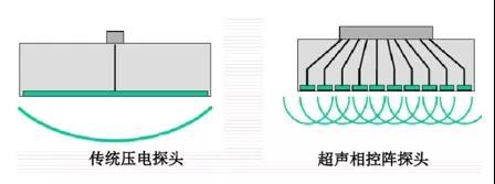超声相控阵技术的基本思路来自于雷达电磁波相控阵技术,脉冲回波法原理。超声相控阵是超声探头晶片的组合,由多个压电晶片按一定的规律分布排列,逐次按预先规定的延迟时间激发各个晶片,所有晶片发射的超声波形成一个整体波阵面,能有效地控制发射超声束(波阵面)的形状和方向,实现超声波的波束扫描、偏转和聚焦。