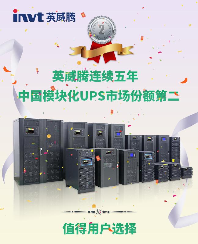 近日,中国关键供配电领域的权威咨询机构赛迪顾问发布《2020~2021年中国UPS产品市场研究报告》,英威腾模块化UPS产品在“中国模块化UPS市场“上排名第二。至此英威腾连续五年“中国模块化UPS产品市场“排名第二。
