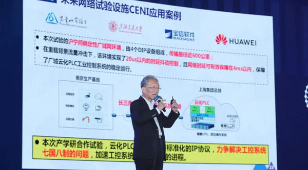 2021年6月17日,在第五届未来网络发展大会期间,华为携手紫金山实验室、上海交通大学、宝信软件正式发布了全球首个广域云化PLC(可编程控制器)技术试验成果。本次试验基于确定性广域网技术和下一代工业控制边缘计算架构,在CENI(未来网络试验设施)上实现了沪宁两地间传输距离近600公里的广域云化PLC工业控制系统的部署和稳定运行,为广域远程工业控制系统的应用铺平了道路。