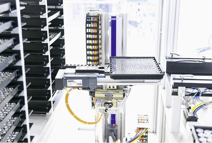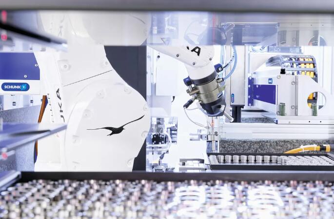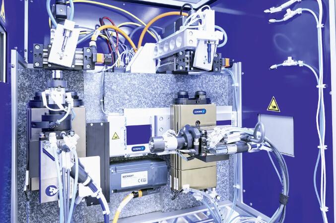 雄克稳固的系统非常符合KELLER的需求。系统中安装了Beta系列和Delta系列共9个电动直线模组,得以确保可靠、快速和精确地输送多达20个工件载体。每个载体上最多可以装载380个工件。