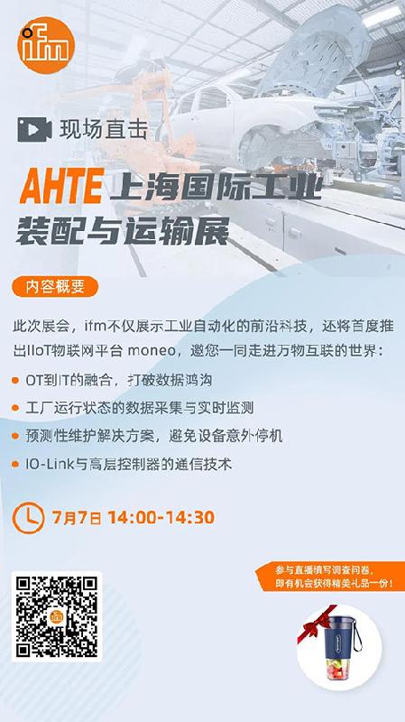 7月7日14:00-14:30,ifm将为无法亲临现场的观众提供独家渠道,线上游览创新产品、解决方案及前沿科技,同时还能实时互动。
