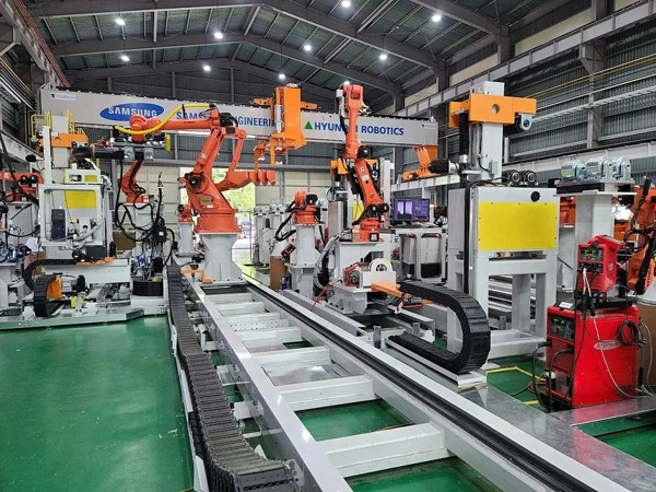 这是世界上第一个实现管轴焊接核心工程自动化的案例。此次实现自动化的是经常使用的直径4~12英寸的碳钢管线轴的"切割-改进-焊接"工程。两家公司当天还签署了管道自动化的类型和工程扩大等协议,计划继续扩大合作。另外,钢架制作自动化也处于设备开发完成后的试运行阶段,预计下半年样机出货。 现代机器人负责管轴和钢架制造工艺所需的搬运、切割、加工、组装、焊接等机器人自动化。管道和钢架重要到可以被称为工厂的血管和骨骼,但在过去,每道工序都是由人力来生产安装,所以会因个人能力不同而出现质量差异。