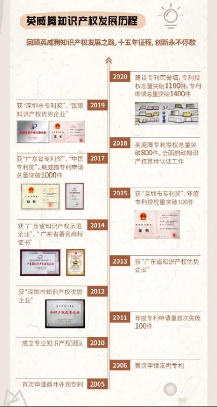 自2011年实施知识产权战略以来,英威腾知识产权团队不断完善知识产权体系建设,知识产权业绩逐年攀升,已通过知识产权贯标认证,获评国家知识产权优势企业及地方知识产权示范企业。英威腾一直重视高质量、高价值专利建设,并在2020年完成一项广东省高价值专利培育布局中心项目。