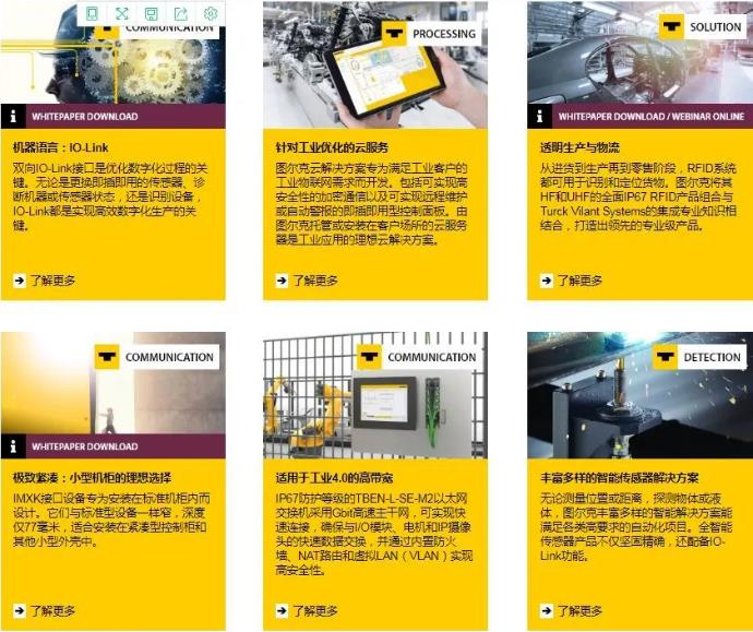 为了展现振奋人心的自动化趋势、领略工业4.0的最新创新成果以及IIoT技术,图尔克推出了全新网站栏目数字创新乐园,以展示过程行业和状态监测领域从IO-Link到以太网的各种信息。该数字化页面可帮助您快速浏览最新自动化主题,查看在线研讨会链接、白皮书以及咨询专家。