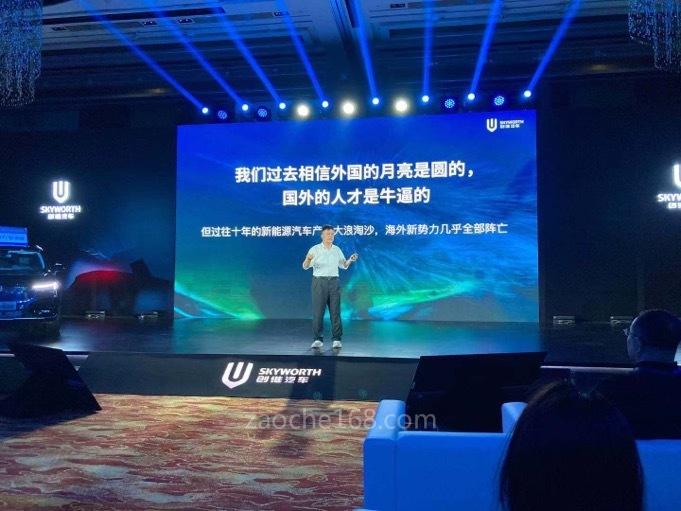 在上市发布会现场,他身后的幻灯片向我们直言不讳地表达了黄宏生自己的想法:在黄宏生眼里,新能源汽车产业已经经历了一场大浪淘沙,纸老虎一般的海外新势力几乎全部阵亡。同时,黄宏生对于创维的品牌价值有着清晰的认知,他相信在电动汽车推广普及的时代,拥有3亿家庭用户的创维品牌能够让创维汽车展现出自己的优势。