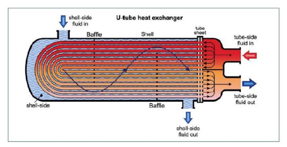 ▲ U型的管壳换热器演示了初级和次级液体进行的热量交换 ▲