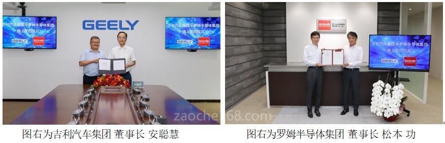 中国领先汽车制造商吉利汽车集团(以下简称“吉利”)与全球知名半导体制造商罗姆半导体集团(以下简称“罗姆”)缔结了战略合作伙伴关系,双方将共同致力于汽车领域的先进技术开发。近日,双方举行了战略合作协议线上签约仪式。吉利董事长安聪慧与罗姆董事长松本功出席签约仪式。