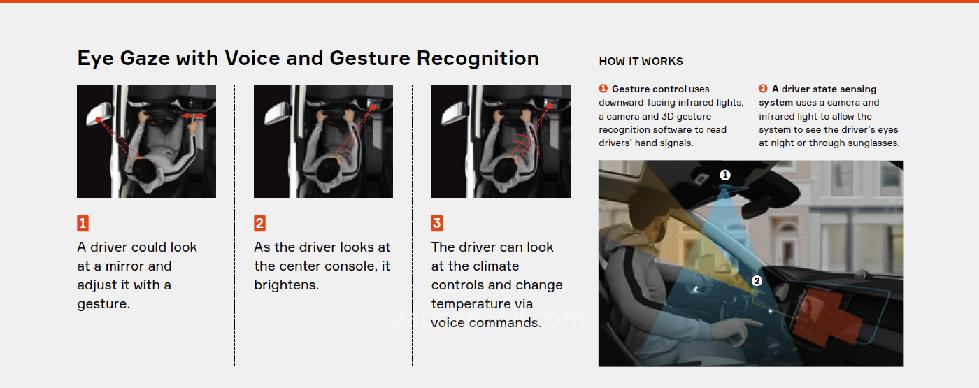 因为舱内传感系统的应用将可以使驾驶员或乘客通过眼睛注视、手势等多种形式实现人机交互,对车辆功能进行控制。