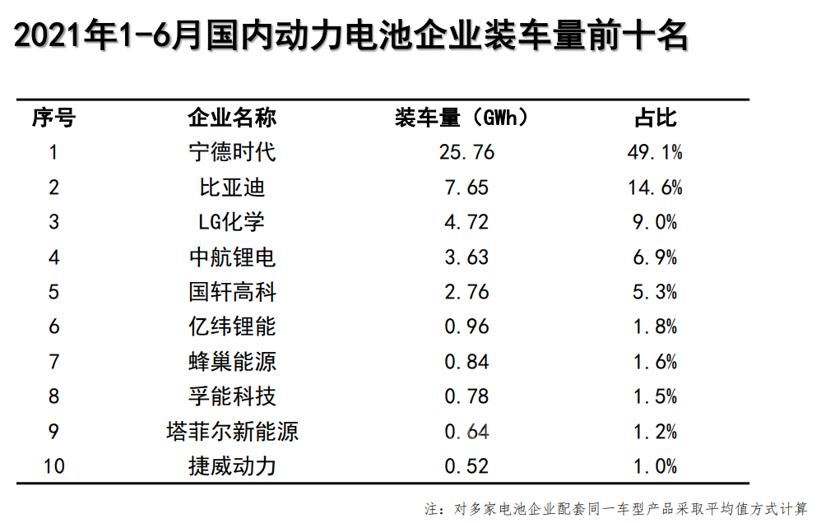 2021年一季度,得益于乘用车软包三元电池订单充足,亿纬锂能动力电池销售同比增长302.21%。1-6月,亿纬锂能累计装机量为0.96 GWh,占比1.8%,在国内动力电池企业装机量中排名第六。