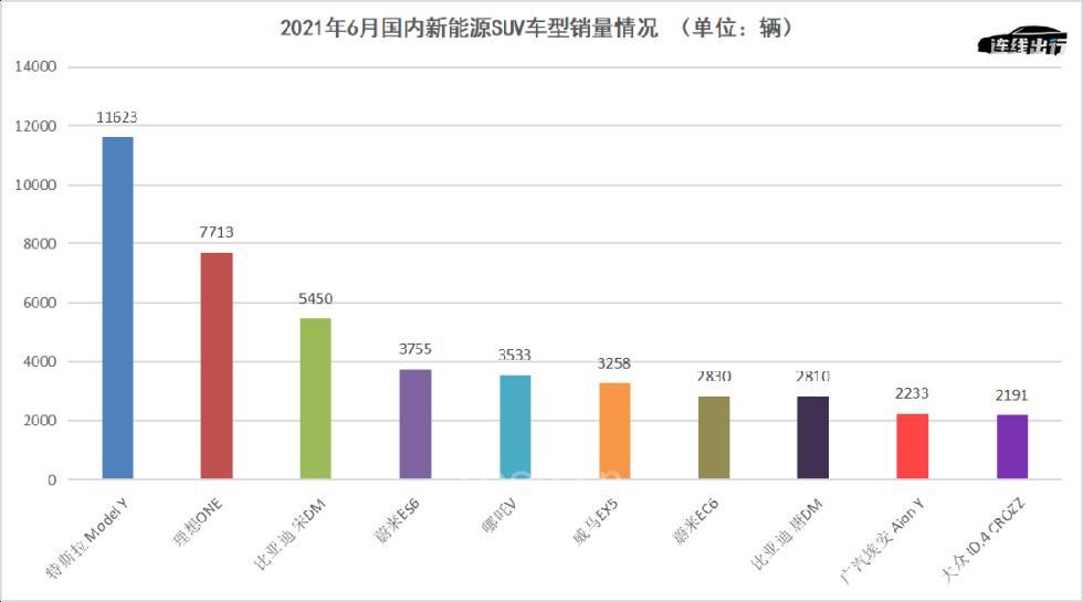 2021年6月国内新能源SUV车型销量情况,数据来源于乘联会,连线出行制图