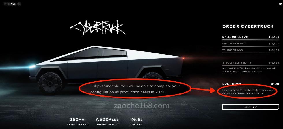 然而如今特斯拉证实,Cybertruck的生产将会延迟至2022年。在预购页面上,特斯拉更新了脚注,称配置工具将在“2022年接近生产时”提供。Cybertruck的延迟生产一定会让许多特斯拉粉丝感到失望,此前该公司宣布,这款电动皮卡已经吸引了超过100万份预订单。