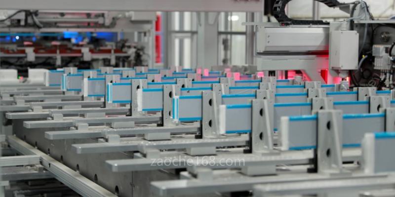 具体到刀片电池的叠片工艺,比亚迪将正极片、负极片,先模切裁断成单片,在隔膜中按照设定的层数叠成极芯,并通过热压将极片与隔膜固定。极片长度约1000mm,条状的正负极片,需要有序地插入折叠隔膜里,这对工艺要求是十分苛刻的——极片需要平整地插入,同时要保证插入的深度,需要刚刚好。