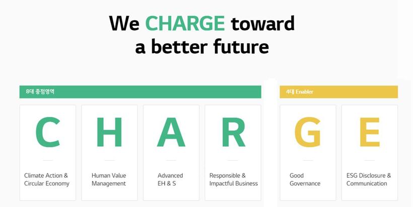 LG新能源表示,将围绕着“CHARGE”构建ESG经营战略,从环境、社会、管治三大维度,涵盖8大ESG重点领域和4大重点要素。